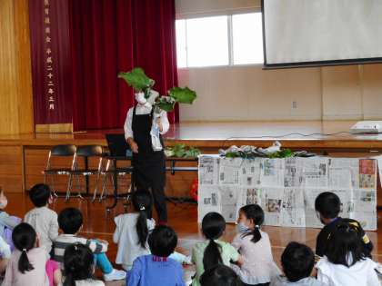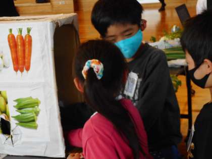 今日は、野菜の栽培に詳しい方に来ていただき、お話を聞きました。野菜についてのクイズや読み聞かせを通して、これから生活科で育てていく野菜についての知識を増やすことができました。質問コーナーでは、子供たちからたくさんの手が挙がりました。育てる野菜を決め、栽培していくときの参考にして、大切に野菜を育ててほしいと思います。