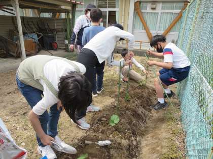今年度、こばと級・ふたば級は、25人でスタートしました。仲間が増えて、ますますにぎやかで楽しいことがいっぱいです。今日は、みんなで中庭の畑に野菜のなえを植えました。今年度は、子供たちの願いから、さつまいも、カボチャ、ミニトマト、キュウリ、ピーマンとたくさんの野菜に挑戦します。うまく育つといいな。