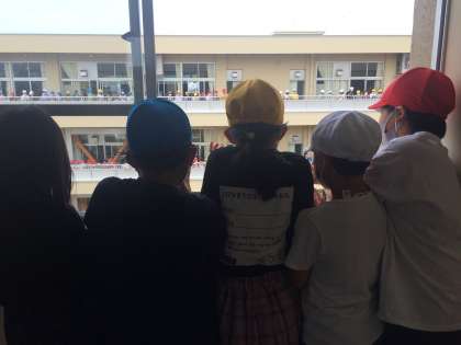今日は、6年生のエールを見ました。全校の前で堂々とやりきる6年生を見て、体育学習参観へのやる気を高めるとともに、来年の自分たちの姿を想像し、改めて高学年としての気持ちを強くもつ子供達でした。