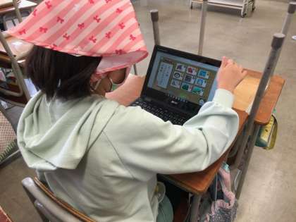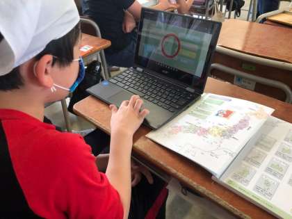昨年度から導入されたタブレット端末に、子供たちもすっかり慣れました。休み時間にも、タイピングの練習をしたり、各教科書に記載されているQRコードをタブレットで読み取って、自ら学びに向かう姿が多く見られます。今日は、都道府県クイズに挑戦したり、人の腕の筋肉の動き方を動画で確認したりしていました。