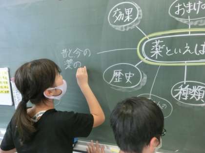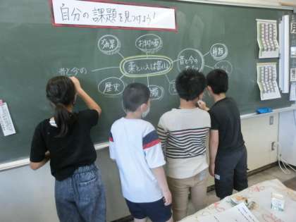 5年生の「総合的な学習の時間」の学習がはじまりました。5年生は、富山が誇る「薬」について調べます。富山が薬で有名であることを知った子供達は、「○○も富山が生産しているんだ」「日本の中でこんなに生産額が高いんだ」とたくさんの気付きを楽しんでいました。今日は、これから自分がどんな課題をもって追求していくのかを、見つける1時間でした。