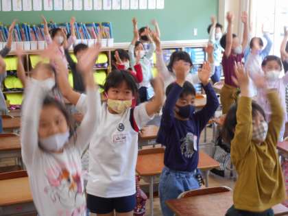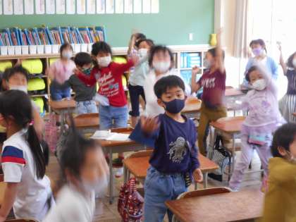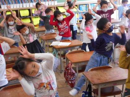 教室で釣先生に教えていただいたダンスを練習しています。みんなだんだんと上手になってきています。