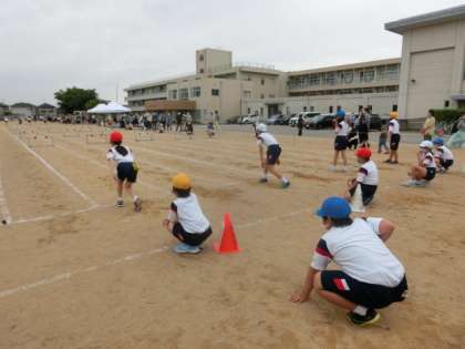 ハードル走では、今まで学習した足の上げ方や歩数の合わせ方を意識し、全力を出し切りました。接戦の組が多く、見応えのある競技となりました。