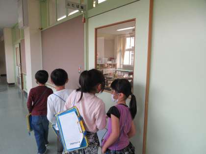 生活科の時間に、1階の探検をしました。事前に決めていた2カ所をまわり、何があるかや何をしているかなどを調査してきました。