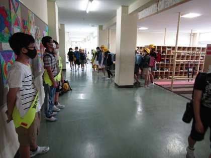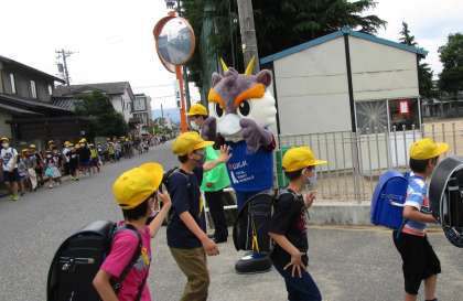 運営委員会の子供たちが中心となって、挨拶運動に取り組んでいます。6月8日には、プロサッカークラブのキャラクターが来校し、登校してくる子供たちに挨拶をしてくれました。今後、相手に伝わる気持ちのよい挨拶を進んでできるようになってほしいと思います。