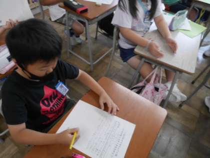 子ども食堂さんが帰られた後も、熱心に分かったことや初めて知ったことをプリントにまとめていました。「行ってみたい!」と思う子が多く、今回のお話が地域に関わるきっかけになればと思いました。