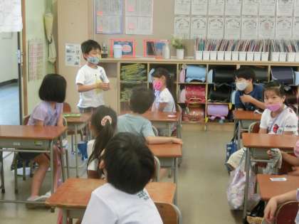 2組では、水曜日の学年・学級タイムに学級でじっくり話をしたり、話を聞いたりする「ききあいタイム」を行っています。今日は、「大人と子供、どちらがいいか」というテーマで自分の立場を決定し、話し合いを行いました。子供たちからは、「たくさん遊べるから子供がいい」や「子供がいいけど、はやく大人になりたい」といった素直な意見や「子供は勉強で失敗してもいいけど、大人は仕事で失敗すると大変」といった鋭い意見が出ました。相手に伝わるような話し方を意識したり、相手の目を見て話を聞いたりする子供の姿に成長を感じました。