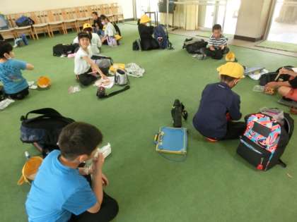 お昼ご飯の様子です。外で思いっきり体を動かしたため、子供たちはおなかが減って弁当タイムが待ちきれない様子でした。きれいに手を洗い、みんな静かに、おいしい弁当をにこにこしながら食べていました。