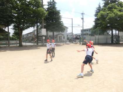 体力テストを着々と進めています。今日はソフトボール投げを行いました。子供たちは、去年よりも1メートルでも伸びるように、必死で投げていました。