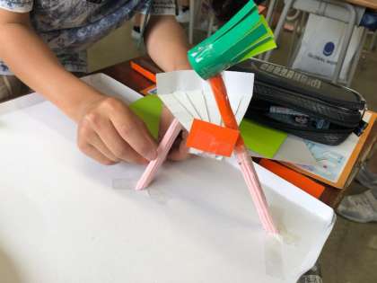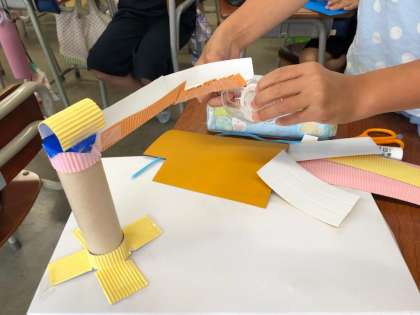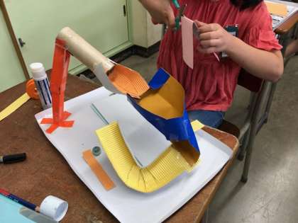 図画工作科の学習では、ビー玉を転がして遊ぶ工作に取り組み始めました。図工が大好きな子供たちです。材料を手にした途端、勢いよく作り始めました。頭の中に既にイメージが湧いており、そのイメージを形に表す子供もいれば、材料を触ったり組み立てたりしながら、作りたい全体像を見付ける子供もいます。どの子も楽しそうに工作を行っていました。どのような作品ができあがっていくのか楽しみです。