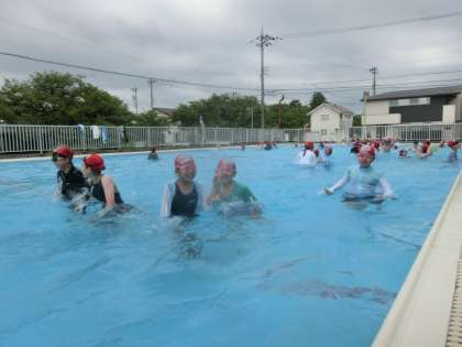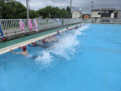 プールに入りました。今日は少し寒かったですが、子供たちは笑顔いっぱいで活動にとりくんでいました。「今年の夏は、たくさん泳ぐぞ!」