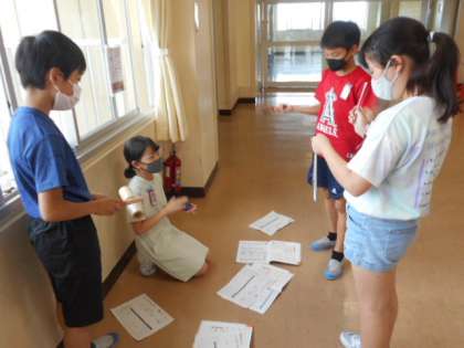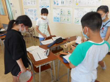 自分たちで楽器を組み合わせながら、繰り返しの表現を入れたりあえて音がない時間を設けたりするなど、様々な工夫を班で考えて取り入れていました。