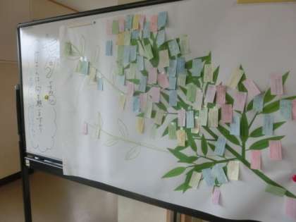 7月7日七夕の日に、学年のみんなで七夕をかきました。「コロナがおさまりますように。」「サッカー選手になりたい。」「期末で200点とれますように。」など、子供たちの思いがたくさん溢れていました。