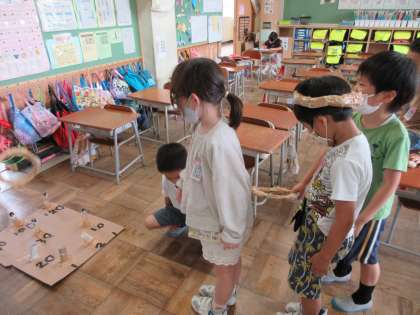 白銀タイムに、遊び屋さんがこつこつ準備した輪投げで遊びました。