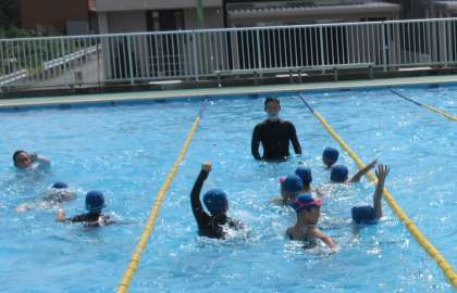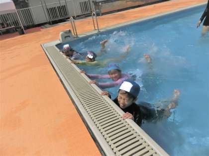 JSSスイミングスクール本郷より外部講師をお招きし、水泳指導をしていただきました。それぞれの泳力に合った指導をしていただき、技術を高めることができました。