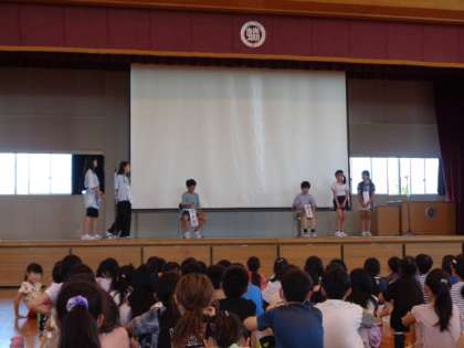 コロナ禍ということもあり、ずっと実現できなかった児童集会。今回は、ミニ集会ということで学年を限定して行いました。集会委員会になった5・6年生の子供たちは、この日のために練習を重ね、みんなに楽しんでもらおうと張り切っていました。今日は、練習の成果を十分に出し、自分たちの伝えたいメッセージ「なりたい自分に近づこう」を伝えることができました。参加してくれた3年生、5年生も楽しんでいる様子が見られ、大成功でした。
