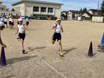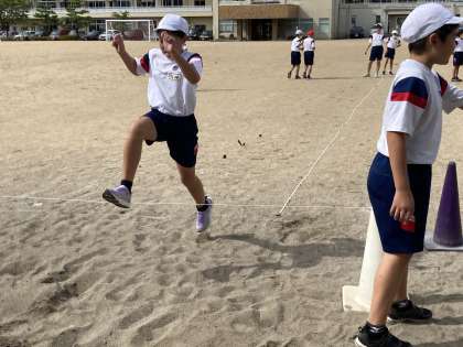 高学年になり、自分に合った助走距離を見つけたり、踏みきり足を決めたりとするなど、よりよい跳躍を目指して考えながら工夫して練習しています。