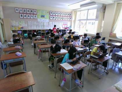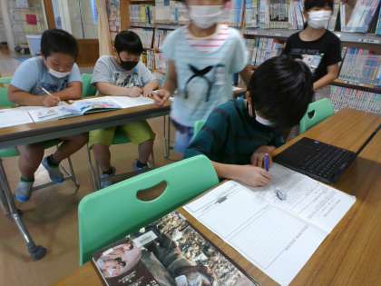 調べる方法はクロムブックだったり、図書室の本だったり、その両方だったり。