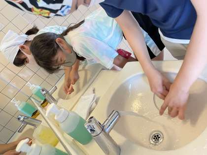 先生から何も指示をされていないのに、自分たちで考えて清掃に取り組みます。学校を綺麗にしようという気持ちが育っています。