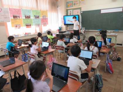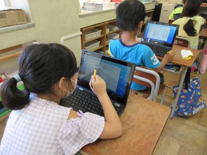 クロムブックを使って、スライドの使い方を教えていただきました。
