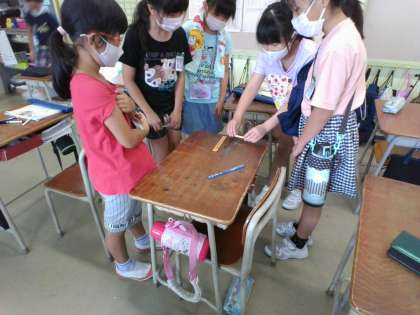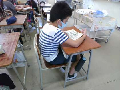 本を読んだり、廊下で友達とおしゃべりしたり、定規で遊んだり、みんなそれぞれの時間を楽しんでいます。
