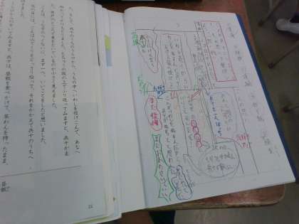 国語で、自分が読み取ったことをノートにまとめる時間がありました。