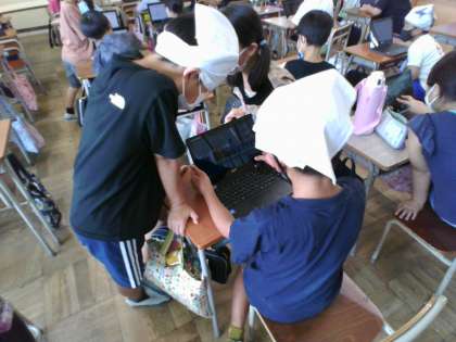 秋になり、学校でもバッタやキリギリス等の昆虫がたくさん見られるようになりました。理科で昆虫の体のつくりを学習した3年生は昆虫に夢中です。学校や家の周りで捕まえた昆虫をみんなで観察しています。「バッタ同士がおんぶし始めた!これは何だろう?」とつぶやいている子どもがいました。その後自分のクロムブックで調べていました。興味があり、疑問に思ったことを本やインターネットで調べようという姿勢がすてきですね。