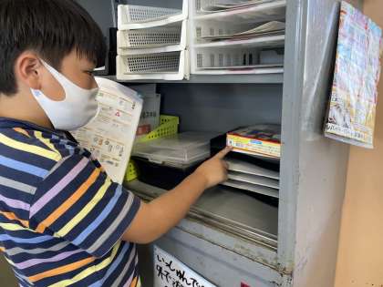 家庭科の学習では、かしこい消費者になろうというねらいのもと、物を買うときにどんなことを考えたらよいかを勉強しています。商品についている表示やマークにも、着目することが大切であると学び、教室の中にある表示やマークを探しました。エコマークやベルマーク、見たことのないマーク等、たくさん発見することができました。
