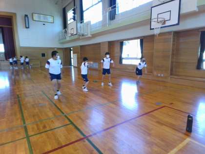 体育で行っているリズムダンスが、少しずつ完成に近づいてきました。チームで振り付けの案を出し合ったり、鏡を見て自分たちの動きの確認をしたりして、楽しみながら踊っています。