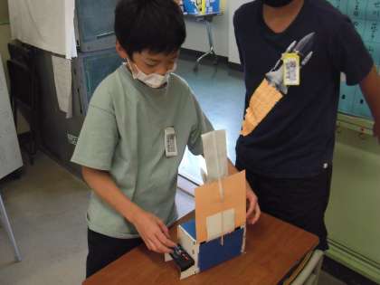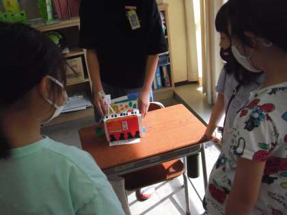 今日は、6年生が自分たちでつくったおもちゃをもって、2年生教室に遊びに来てくれました。動かし方を教えてもらい、楽しく遊ぶことができました。子供たちは、「すごい」「かわいい」とうれしそうでした。