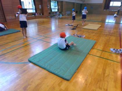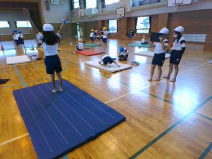 体育ではマット運動をしているクラスもあります。今日は友達とペアになり、お互いの技を見合いました。そして、動画を撮影し、もっときれいに回るコツを見つけました。自分ではできていると思っていたのですが、動画を見ると「足が曲がっている」「まっすぐ転がっていない」と練習すべきポイントを見つけることができました。