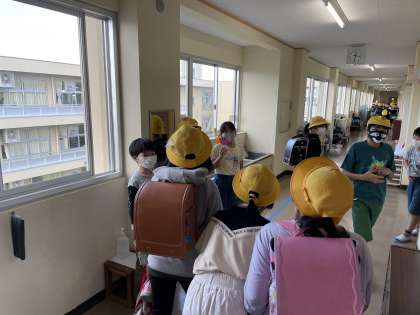 下校時にも、あいさつ運動を中心に行っている運営委員の子供達が、教室前で、あいさつを広めていました。「さようなら」と子供達同士でさわやかなあいさつが交わされていました。