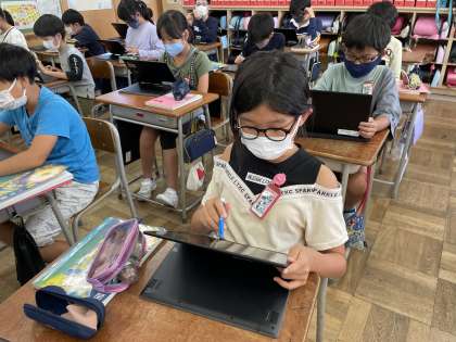 クロムブックにジャストスマイルドリルがインストールされました。子供達は楽しそうに学習していました。