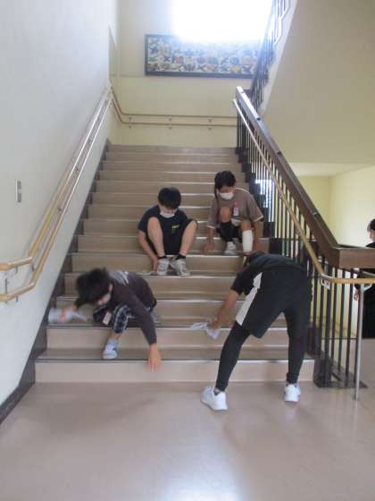 5年生の中に、朝のちょっとした掃除ボランティア「ちょボラ」をやっている子供達がいます。階段を掃除したり、壁をみがいたりと、みんなが気持ちよくすごせるようにと学校をきれいにしています。さすが高学年!