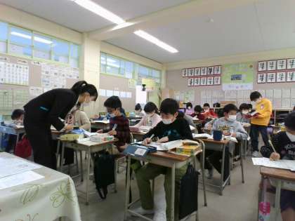 4年生のクラスに入っている教育実習生の授業が始まりました。