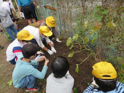 今年も、いもほりの季節がやってきました!先週、みんなでさつまいもほりをしました。ゆずり合いながら、楽しくほることができました。今年のしゅうかくは33個でした。一人一個ずつ家に持ち帰ります。子供たちが掘ったいもは、それぞれのご家庭で、どんなお料理に変身するのか楽しみです。