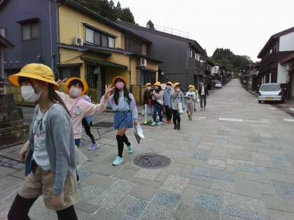八尾町の町並みに、蜷川校区との違いを感じながら歩いていました。
