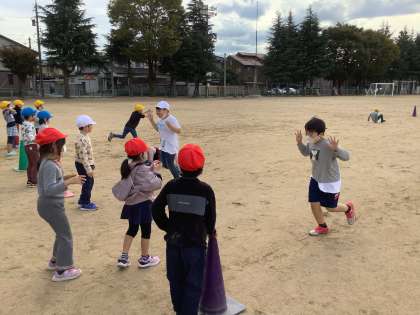「ふえおに」では、グラウンドいっぱいに走り回り、楽しんでいました。