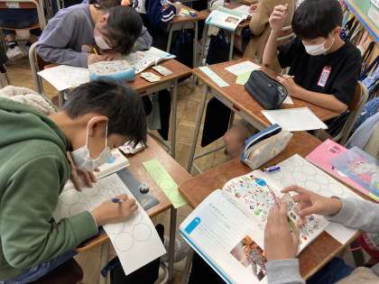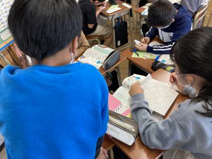 国語科の学習の中で、漢字を使ったすごろくを作っています。