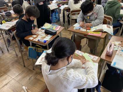 まだ、作っている最中ですが、みんなで相談しながら楽しく文章を考えたり、教え合ったりする姿がほほえましく思えました。完成が楽しみです。