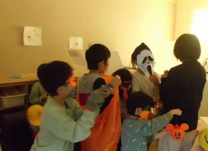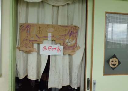 10月29日(金)こばと2組は、みんなで手作りしたお化けやしきを開きました。ふたば・こばと級の友達を呼んで楽しむ予定でしたが、通りかかった様々な学年の子供たちや先生方が、朝から中に入って楽しんでくれました。おかげで、お化けたちも大よろこび!ハロウィンだけど・・和風のお化け「いったんもめん」や「かさおばけ」も登場して、とても楽しい1日でした。