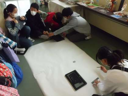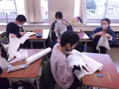 学習の発表会のために小道具づくり 6年