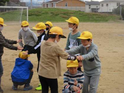 午後、学校に帰ってきてからは、クラスごとにお弁当を食べました。またクラスやグループで計画していた遊びをグラウンドで行いました。