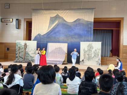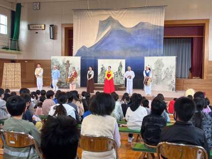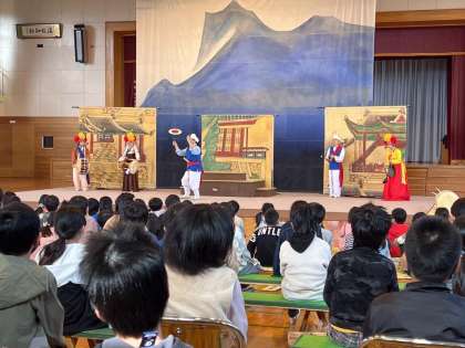 水曜日に、劇団ともしびの方々による「とらの恩返し」の劇が行われました。とらと人間のあたたかいお話に、子供たちは夢中になっていました。劇のあとには大道芸も行われ、素晴らしい芸の数々に歓声をあげながら拍手をする子供たちの姿がありました。