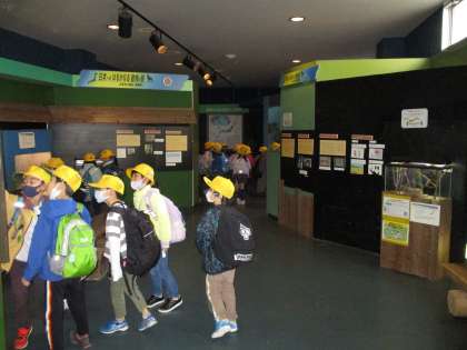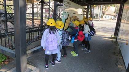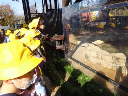 動物を見ている様子です。「キリンのベロが黒いよ」「フラミンゴの顔がハートになっている!」など、たくさんの発見をしました。