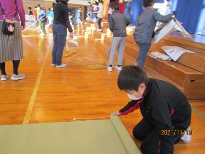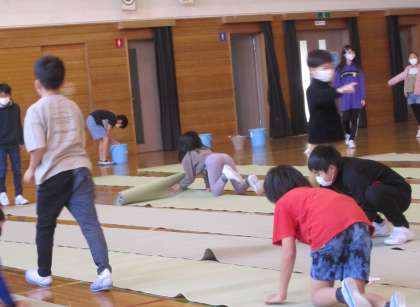 今日は学習の発表を見ていただく保護者の方々の客席になるゴザをきれいに拭きました!