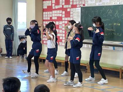 白銀タイムにダンスクラブの発表がありました。たくさんの観客の前で、堂々と踊りきる子供達が輝いていました。観客のみなさんから、大きな拍手をもらいました。