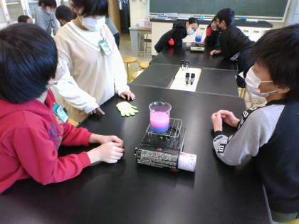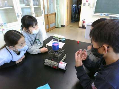 水はどのように温まるのか、示温インクを用いた実験をして調べました。インクの色の変わり方から、どのように考察するのでしょうか。