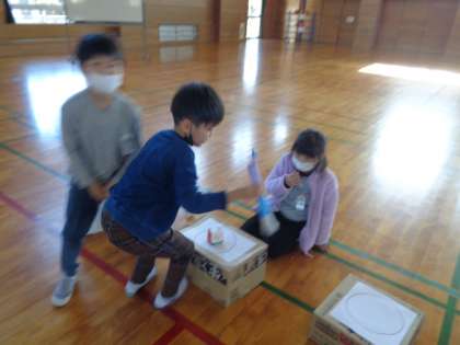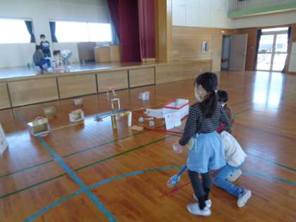 生活科の学習では、1年生を招待して遊ぶためにいろいろな遊びを考えておもちゃを作っています。今日は、本番に備えてお試しをしてみました。友達の考えた遊びを体験して、「これはおもしろいね」「レベルがたくさんあって飽きないね」など、それぞれのよさを伝え合っていました。アドバイスも交換し、もっと楽しい遊びになっていきそうです。