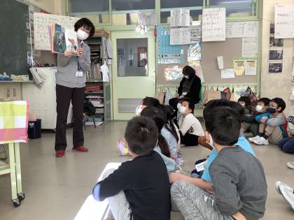 読み聞かせでは、クラスごとに「鳥」や「天気」といったテーマに沿った本を紹介してもらいました。